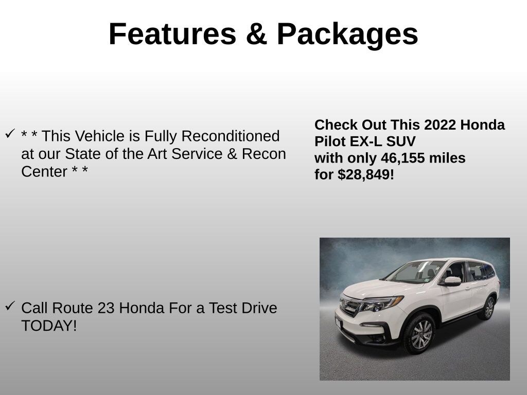Platinum White Pearl 2022 Honda Pilot EX-L 9-Speed Automatic AWD 3.5L V6 24V SOHC i-VTEC